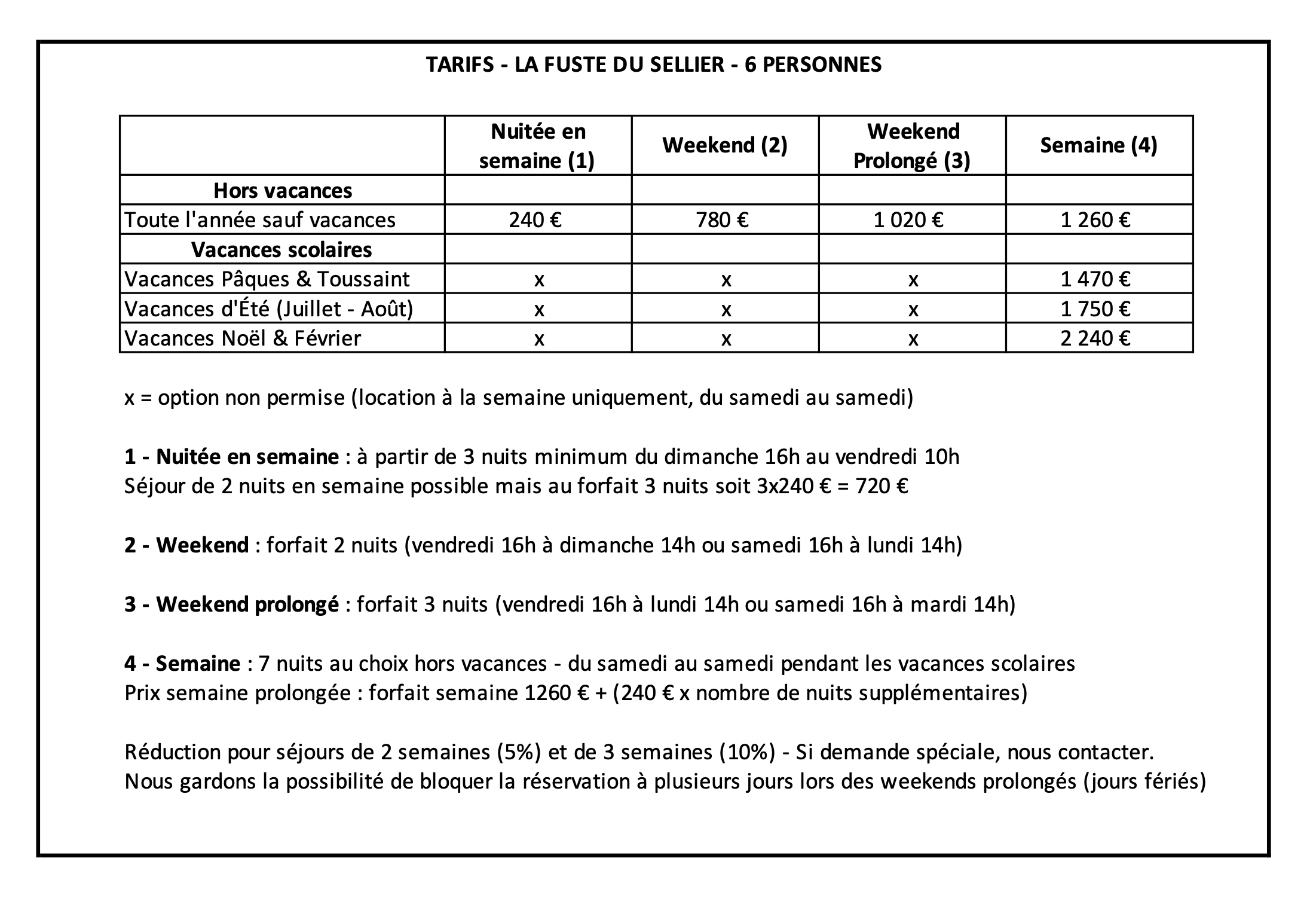 ★ Tarifs du chalet en photo ci-dessous :