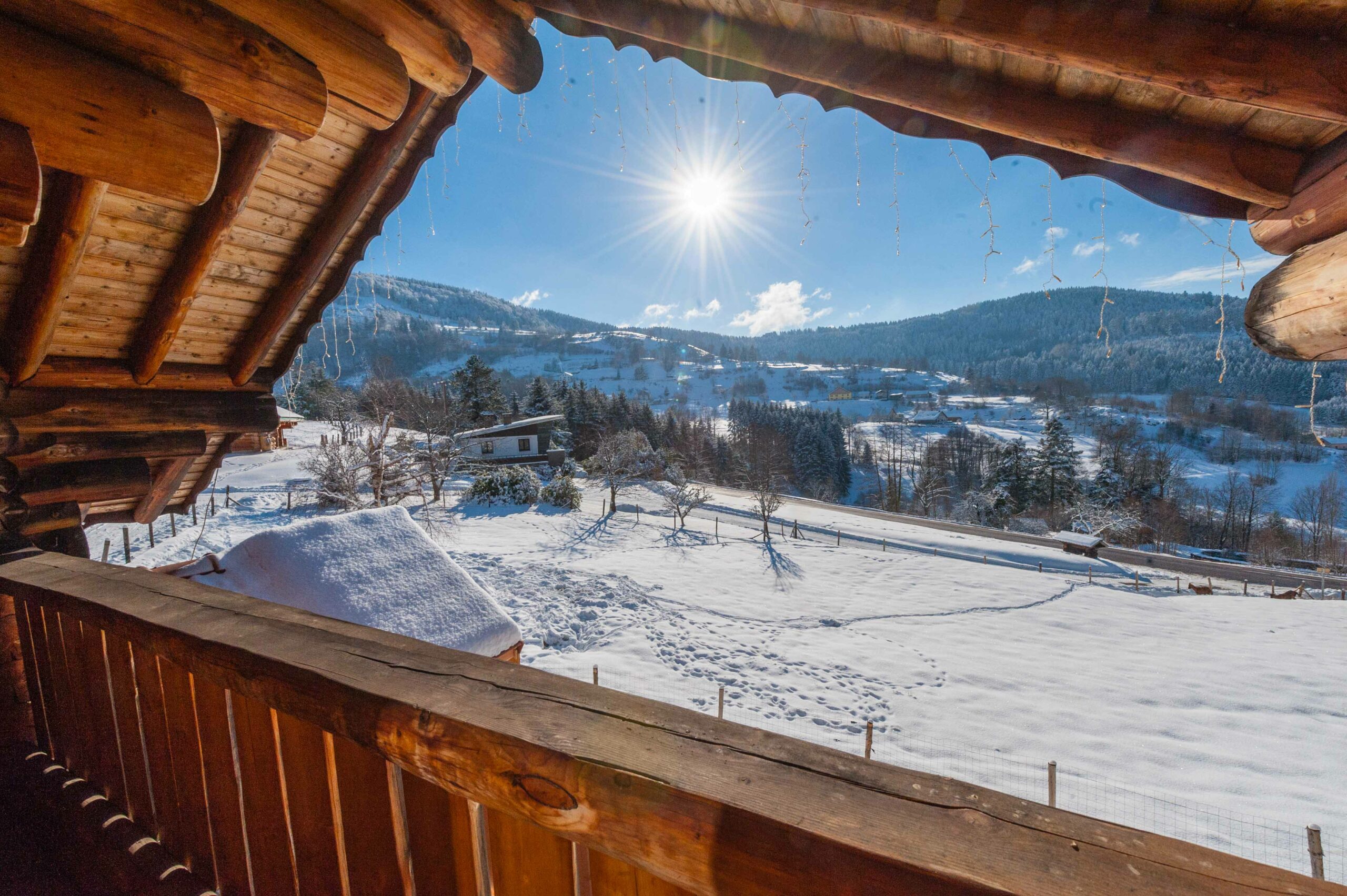Détendez-vous sur sa grande terrasse, dans le jacuzzi ou dans le kota-sauna au feu de bois. Profitez également du chalet détente à 50 mètres avec piscine chauffée toute l’année (28°), sauna, salle de sport, billard et coin détente.